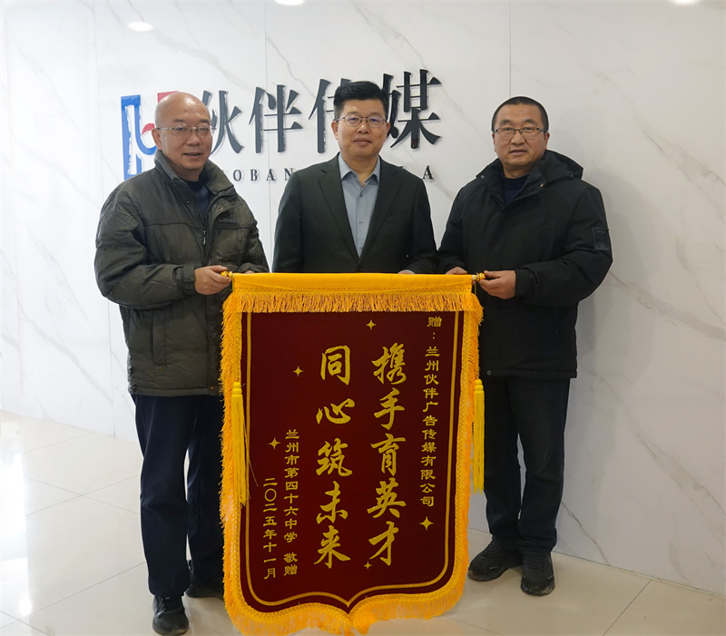 锦旗相赠,情谊绵长 | 兰州市第四十六中学向伙伴传媒赠旗致谢